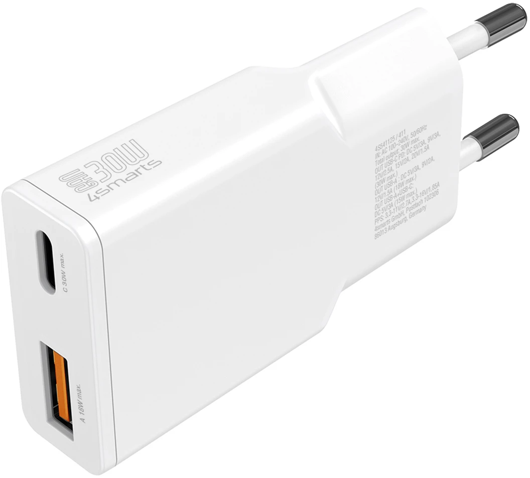 4Smarts Netzladegerät PDPlug Slim Duos 30W GaN 1C+1A Weiß
